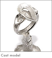 The cast model Requires a variety of finishing including grinding, filing, sanding and pre-polishing techniques in anticipation of setting the diamond(s).