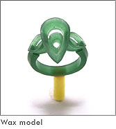 The advantage of executing a design in wax is that it allows you to view the piece as it will appear in metal. Of course, you will be viewing it in a green, blue or some other wax color and not as it will ultimately appear in your metal of choice.. In this instance you will have to apply your imagination in order to visualize the finished piece.